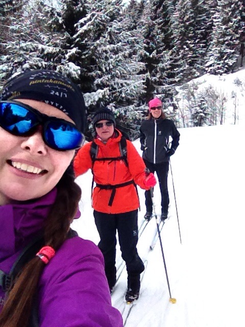 Kun päivän aikana hiihtää useissa eri korkeuksissa se tuo haasteensa suksien voitelulle. Alhaalla laaksossa oli aamuisin vain muutama pakkasaste. Iltapäivisin laakson ladut olivat rakeisia, koska lämpötila on plussan puolella. Kun siirtyi korkeammalle ja korkeammalle niitylle hiihtämään oli hyvin äkkiä jo 5-10 pakkasastetta. Minulla oli mukana omat Atomic skintehc sukseni eli siis ”karvapohjasukset”. Nämä olivat aivan ehdottoman hyvät olosuhteissa, joissa lumen koostumus ja lämpötila vaihtelee päivän aikana. Lisäsin vain pikaluistoa pohjiin ja karvat huolehtivat pidosta ylämäessä. Välillä tuli pyllähdettyä mäessä jos latu-ura oli huono. Olipa siellä myöskin mäki josta totesin, että on niin jyrkkä ja jäinen että en tule sitä murtsikoilla alas vaan otan sukset jalasta ja kävelen.