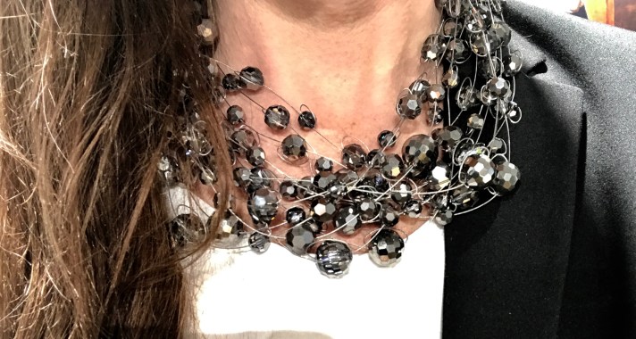 Tilaisuudessa oli myös House of Elliotin käsintehtyjä ja korkealaatuisia helmikoruja. Kuvissa näkyvät korut ovat todella naisellisia ja tyylikkään näköisiä. Monessa korussa oli innovoitu niin, että niitä pystyi käyttämään usealla eri tavalla tai muokkaamaan. Näistä koruista ehdoton suosikkini oli alimmaisessa kuvassa näkyvä runsas kaulakoru joka on kuvattu omassa kaulassani.