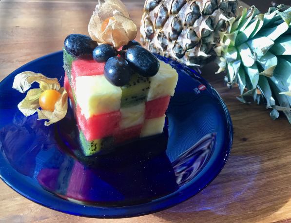 Rubikin kuutio-salaatti on näyttävä tarjottava esimerkiksi: alkupalana, välipalana tai jälkiruokana. Raaka-aineiksi voi valita suosikki hedelmiään, kuitenkin sellaisia joiden kuutioiminen on suhteellisen helppoa. Lisäksi salaattiin voi laittaa hedelmien joukkoon vaikka juustokuutioita. Jotta kuutio olisi kauniin näköinen kannattaa valita värikkäitä raaka-aineita. Jos pidät juureksista voi kuution yhtä hyvin rakentaa: porkkanasta, lantusta tai bataatista, jotka kaikki ovat hyvänmakuisia raakanakin. Juuresten leikkaaminen tasaisiksi kuutioiksi on mielestäni helpompaa kun joidenkin hedelmien.