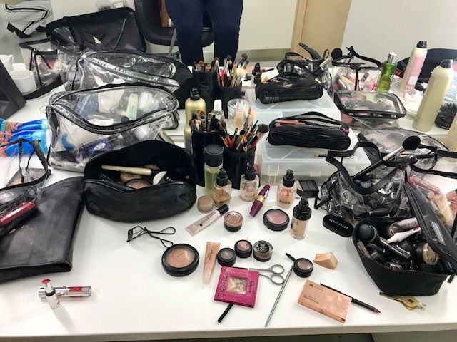 Seuraavaksi menimme huoneeseen missä tehtiin kuvausmeikki. Nyt on muotia luonnollinen meikki ja varsinkin kun kuvataan ruotsalaiselle yritykselle oli tavoitteena saada mahdollisimman luonnollinen lopputulos. Kuvauksiin piti tulla ilman meikkiä. Hiusten tuli olla puhtaat ja niissä ei saanut olla muotoilutuotteita. Meikkaus aloitettiin laittamalla kevyesti värivoidetta kasvoille. Sen jälkeen lisättiin hieman poskipunaa ja siistittiin kulmakarvat. Ripsiväriä minulle ei laitettu lainkaan (käyn parin kuukauden välein ripsiteknikolla laittamassa ripseni, joten siksi niille ei tarvinnut tehdä mitään). Huulipunasta keskustelimme yhdessä meikkaajan kanssa, että mitä sen kanssa tehdään. Oma toiveeni oli, että laitetaan kirkas huulipuna. Meikkaajalle oli tärkeää, että tunnen oloni luontevaksi hänen tekemässään meikissä. Hiukset päädyttiin suoristamaan raudalla suoriksi. Kahdella muulla mallilla oli kiharretut hiukset, joten minun hiukset haluttiin sitten jättää suoriksi. Lopuksi vielä lakattiin kynnet (myös varpaista) ja meikattiin myös kädet ja jalat voiteella, joka heijastaa valoa. Koska minulla oli mekko, jossa olkapäät olivat paljaina meikattiin hartioilta piiloon rintaliivien painamat punoittavat jäljet.