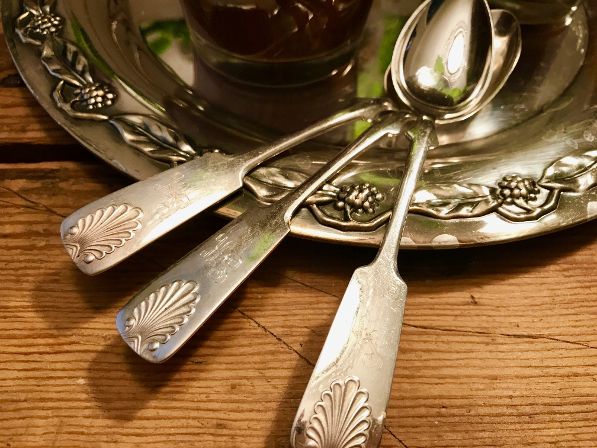 Herkkuhetkeen sopii tietenkin vanhat Musla hopeat. Perinnöksi on kertynyt melkoinen määrä pöytähopeita. Meillä on pöytähopeat lähes päivittäisessä käytössä, sillä niistä on enemmän iloa käytössä kuin pöytälaatikossa.