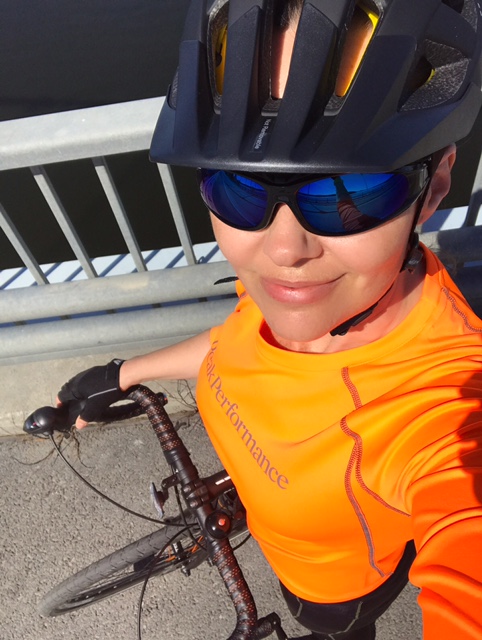 Tässä olenkin käynyt Lidi:ssä ostoksilla. Pyöräilylasit ovat Lidl hankinta muutaman vuoden takaa. Näihin laseihin on siniset ja mustat linssit. Kuvassa on päässä nyt 2017 keväällä hankittu uusi kypärä. Kypärä on muuten hyvä malliltaan ja säädöiltään, mutta kaipaisin verkkoa tuohon ilmastointiaukkojen kohdalle. Joskus on todella epämiellyttävää kun lentävät hyönteiset menevät aukoista sisään ja ryömivät pitkin päänahkaani. Silloin on pakko pysähtyä ja häätää vapaamatkustajat pois hiusten joukosta. Jalassa on Lidl pyöräilyhousut, jotka ovat ihan hyvät käytössä. Lidl vaatteissa on aika reilu mitoitus, joten numeroa pienemmät pöksyt olisi riittänyt mutta ei nämä nyt jalasta putoa. Paitana ihan tavallinen ja näkyvä tekninenpaita.
