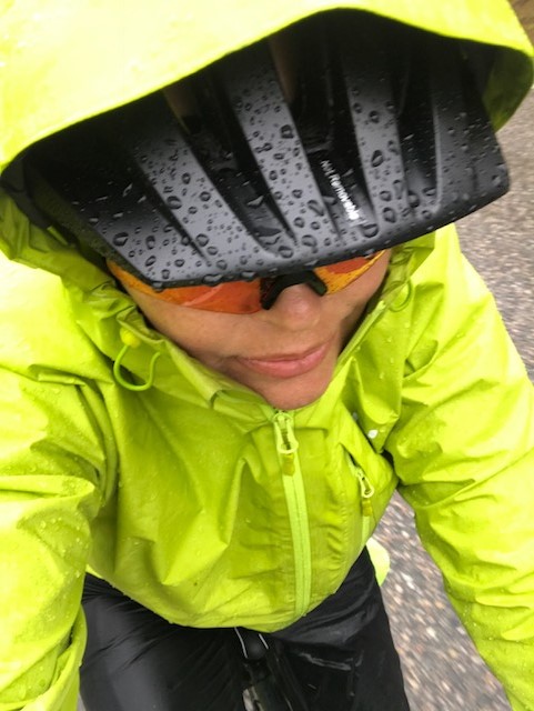 Eikä tämä pyöräily Suomessa ole yhtä auringonpaistetta. Haglöfsin takki pitää pienen sateen, mutta tuntien sade tulee takista läpi (se on kokeiltu). Toisaalta tämä on mukava takki pyöräillessä kun se pitää: tuulen, pienen sateen ja hengittää. Takin ominaisuudet tosin tutkimusten mukaan huononevat joka pesun jälkeen, joten kannattaa miettiä kuinka usein takkia pesee jos haluaa että se pitää vettä.