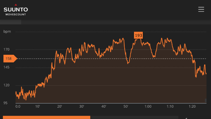 Spinningissä on se hyvä puoli, että pyörät eivät liiku mihinkään, joten matkan varrelle ei ole vaarana jäädä. Eikä näillä pyörillä myöskään tarvitse pelätä kaatuvansa vaikka ajaisi kuinka lujaa sitä kuvitteellista alamäkeä. Itse olen meinaan melkoinen himmailija tuolla tienpäällä vauhdikkaassa mäessä. Kyllä jarrulevyt kuumenee kun jarruttelen kovimpia vauhteja isossa alamäessä. Tuo yläpuolella oleva kuva on intervalli spinning tunnilta – huikeat maksimi sykkeet 193. Tällaisella tunnilla on antanut kaikkensa ja seuraavalle päivälle on hyvä suunnitella jotain rauhallista ja palauttavaa liikuntaa.