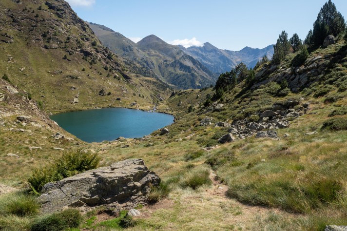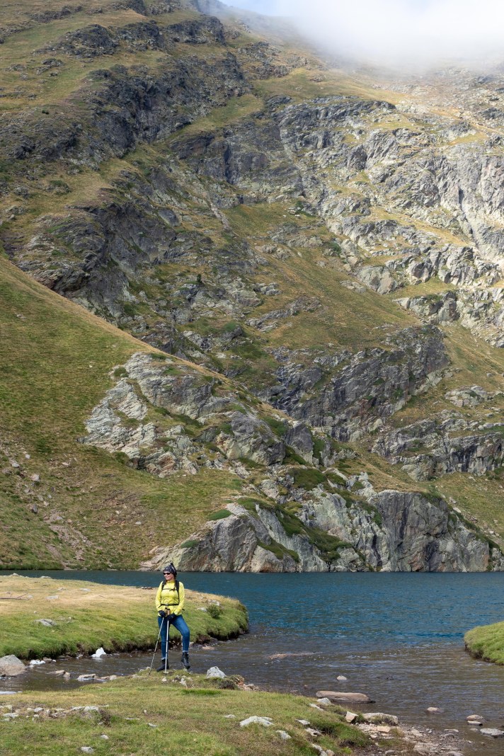 Viimeisen vaelluspäivän vietimme Tristainan järvialueella, joka sijaitsee Andorran luoteisosassa. Aikaisemman jäätikön muovaamat laaksot järvineen levittäytyvät kauniisti ympärille. Olemme Espanjan ja Ranskan vuoristoisella rajaseudulla, jossa korkeimmat huiput ulottuvat noin 2700 metriä merenpinnan yläpuolelle. Tämä reitti oli todella suosittu ja poluilla näkyi paljon vaeltajia.