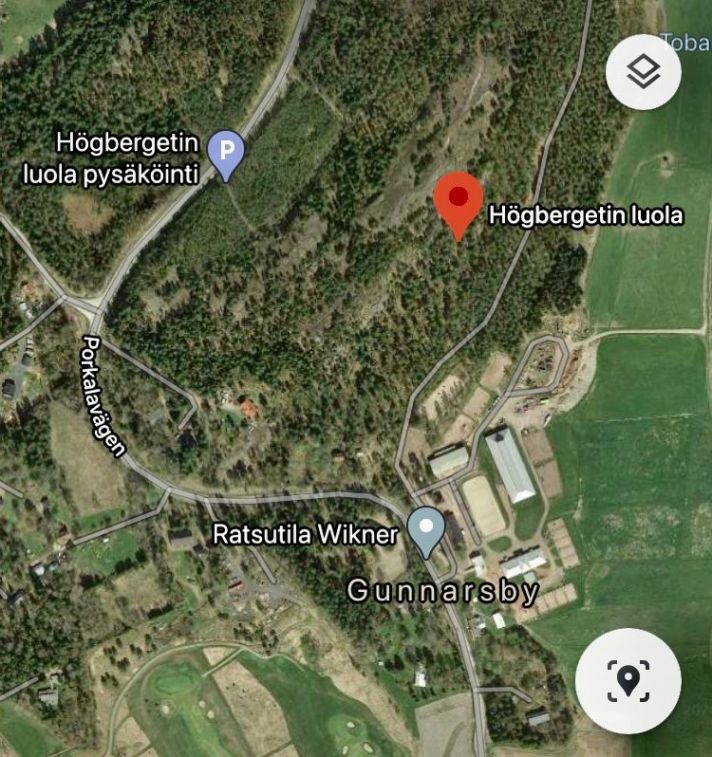 Kirkkonummelta löytyy viehättävä pieni luola, jolla on hyvin naiselliset muodot. Miten tänne luolalle sitten parhaiten pääsee? Luola sijaitsee lyhyen kävelymatkan päässä Porkkalantiestä. Luolaa pitää lähestyä Porkkalantieltä minne paikallinen maanomistaja on rakentanut jyrkkään rinteeseen 3-4 auton parkkipaikan. Pysäköinnin voi maksaa verkkopankissa tai mobilepay:llä ja minusta maksu on kohtuullinen korvaus siitä, että hän järjestänyt alueelle pysäköinnin. Auton navigaattori saattaa ohjata sinut Wiknerin ratsutilan pihaan, mutta se on yksityisaluetta ja autojen liikkuminen ratsastajien joukossa voi aiheuttaa vaaratilanteita. Kunnioitetaan siis ratsutilan rauhaa ja kävellään luolalle Porkkalantieltä kallioden yli.